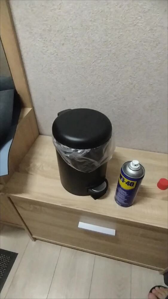 Metalinė matinė šiukšlių dėžė,kuri stovi vonioje ir kartą nuo karto gauna vandens, pasidengia kalkėmis, vandens dėmėmis.